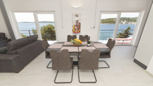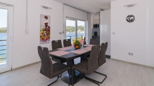 This spacious first-floor apartment offers three bedrooms, each with a large double bed. A comfortable living room, two bathrooms with showers (one including a washing machine), a dining room, and a fully equipped kitchen provide everything needed for a relaxing stay.
