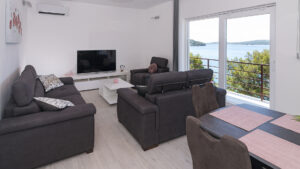 The modern design complements the apartment’s balcony, while air conditioning, free Wi-Fi, and smart TVs with satellite channels in every room enhance comfort. Free public parking is available right in front of the building for easy access.